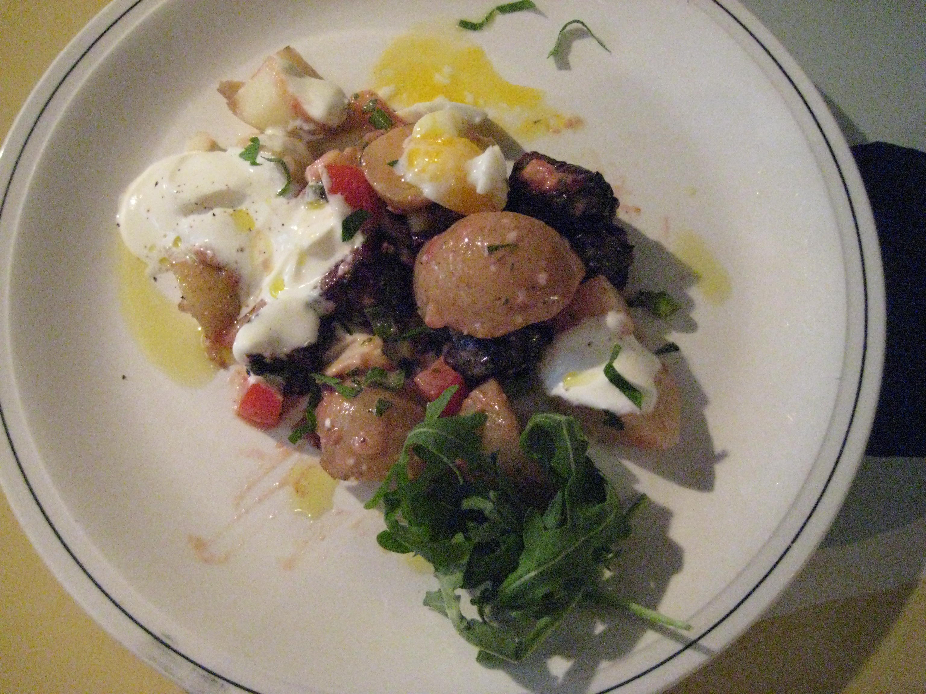On Saturday, after an early rise and some exercise, I felt entitled to go on a meat feast at Brockley market. I had a BLT breakfast, then bought a healthy portion of calve’s liver for dinner, and evidently could not resist a bag of homemade pork scratching for a pound. On the way home, through the much more down to earth Lewisham market, the sight of cavolo nero made me want to cook something rich and warm for the first time in weeks.